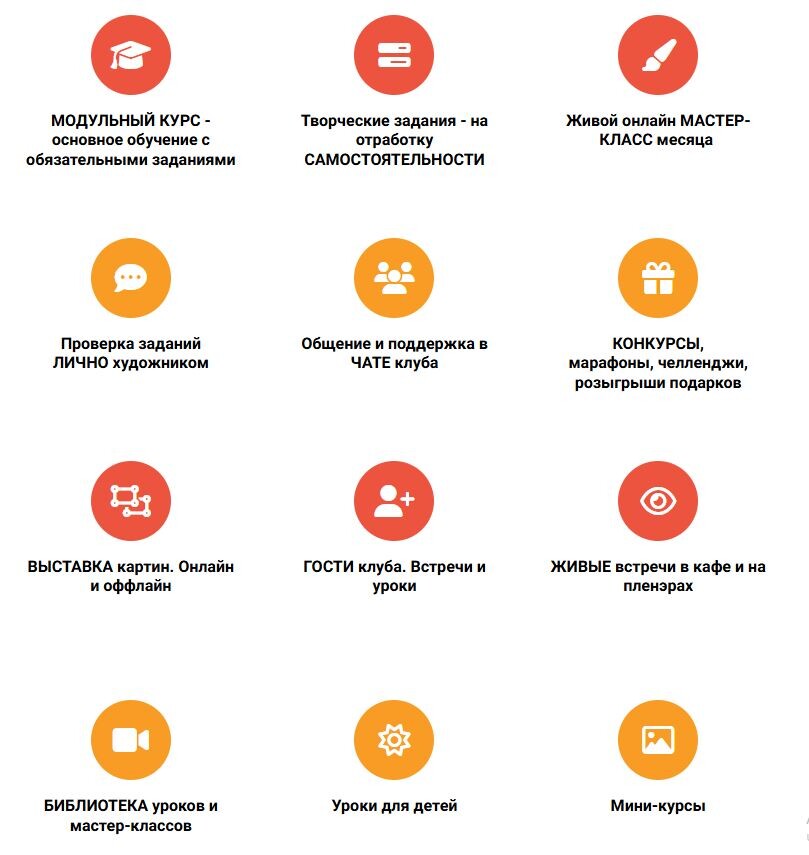 - Бесконечный доступ к обущающему курсу "Путь художника к самостоятельному творчеству", гостевым урокам и библиотеке мастер-классов